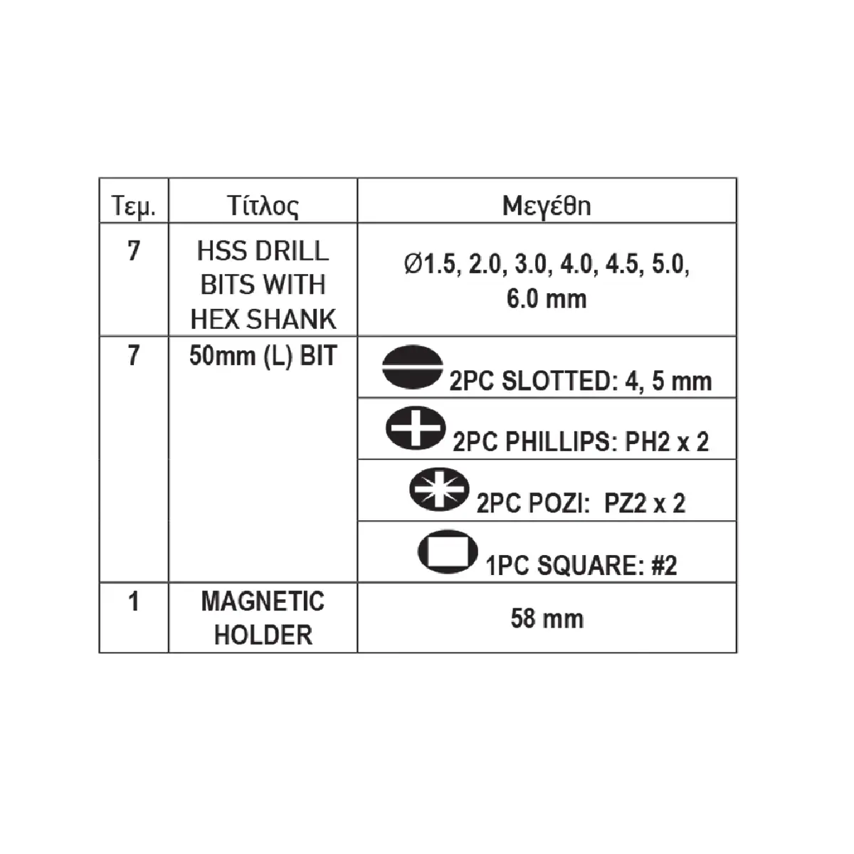 Κατηγορίες: Αξεσουάρ Μηχανημάτων, Εργαλεία, Εργαλεία Χειρός, Κατσαβίδια - Μύτες, Τρυπάνια Εργαλείων