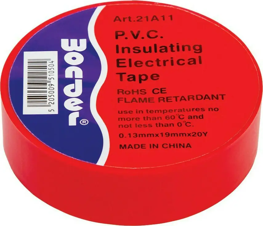 Η μονωτική ταινία κόκκινη 19mm x 20m από βραδύκαυστο PVC προσφέρει εξαιρετική ελαστικότητα και ποιοτική κόλλα για ασφαλή και αξιόπιστη χρήση. Κατασκευασμένη από ειδικό πολυμερές PVC, αποτελεί αποτελεσματική λύση για μόνωση, προστασία και ενίσχυση μόνωσης αγωγών και καλωδίων. Διατίθεται σε κόκκινο χρώμα για τη σήμανση και κωδικοποίηση αγωγών και καλωδίων.