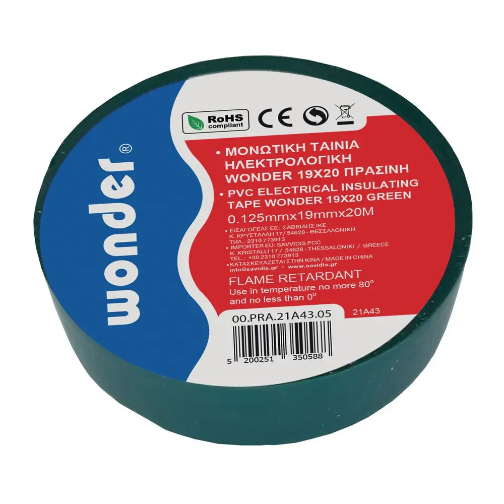 ΤΑΙΝΙΑ ΜΟΝΩΤΙΚΗ WONDER ΠΡΑΣΙΝΗ 19mmx20m