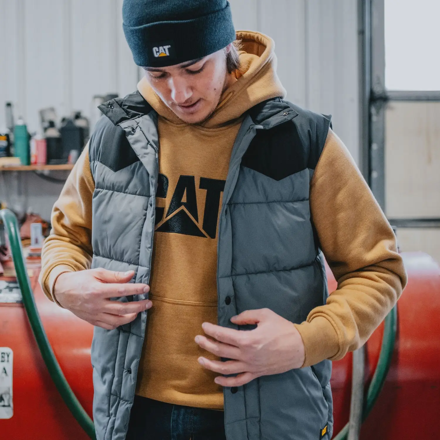 Κεντημένο λογότυπο CAT στο μπροστινό μέρος για αυθεντικό βιομηχανικό χαρακτήρα και αναγνωρισιμότητα.