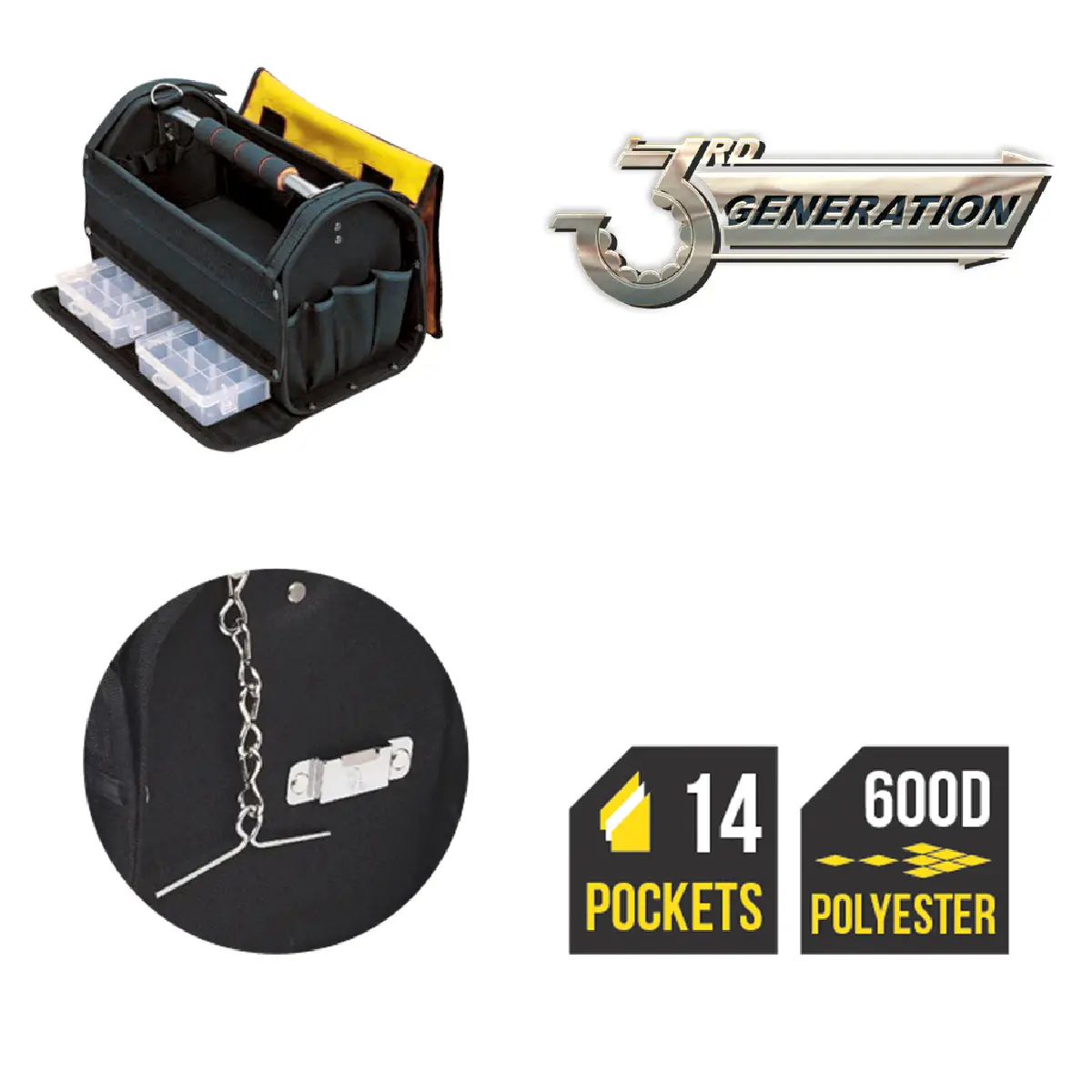 Η τσάντα μαστόρων Top Master με διαστάσεις 420x200x240mm είναι η ιδανική λύση για τη μεταφορά και αποθήκευση των εργαλείων σας. Με 14 τσέπες για την οργάνωση, προσφέρει εύκολη πρόσβαση και αποτελεσματική τοποθέτηση. Κατασκευασμένη από πολυεστέρα (polyester), είναι ανθεκτική και πρακτική για κάθε μάστορα.