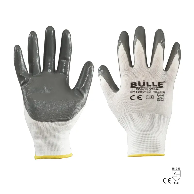 Συνθετικά γάντια Nylon, πυκνής ύφανσης χωρίς ραφές με επικάλυψη νιτριλίου. Τέλειος συνδυασμός υψηλής ποιότητας και ανταγωνιστικής τιμής. Ιδανικά για εργασίες συναρμολόγησης και επισκευών εξασφαλίζουν πολύ καλό κράτημα αντικειμένων με στεγνές ή υγρές επιφάνειες. Έχουν υψηλό βαθμό αντοχής στις τριβές, ράχη που αναπνέει και ελαστική μανσέτα που διασφαλίζει άριστη εφαρμογή στο χέρι.