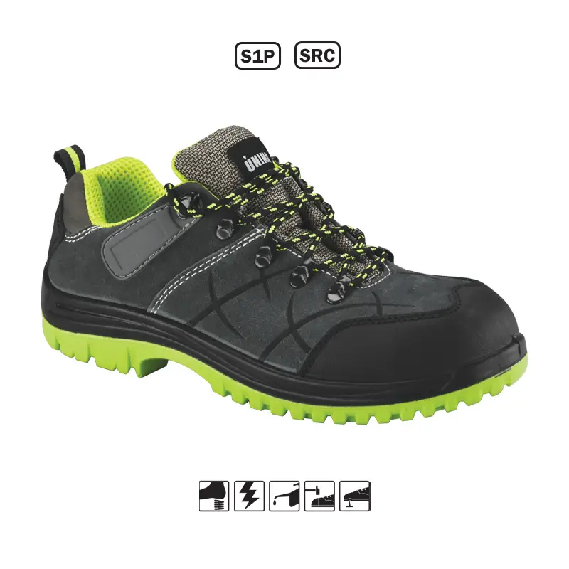 • Παπούτσια ασφαλείας S1P από δέρμα σουέτ χρώματος γκρι/πράσινο
