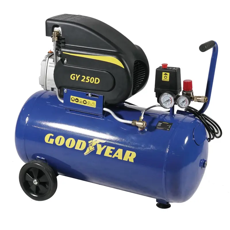 Νέος αεροσυμπιεστής GOODYEAR με ελαιολίπαντη κεφαλή (λιγότερες φθορές, μεγαλύτερη διάρκεια ζωής) και μοτέρ induction (χωρίς ψύκτρες).