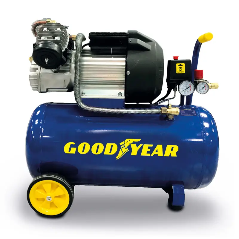 Νέος αεροσυμπιεστής GOODYEAR με ελαιολίπαντη κεφαλή (λιγότερες φθορές, μεγαλύτερη διάρκεια ζωής), μοτέρ induction (χωρίς ψύκτρες) και είναι κατάλληλος τόσο για ερασιτεχνικές όσο και για ορισμένες επαγγελματικές εφαρμογές.