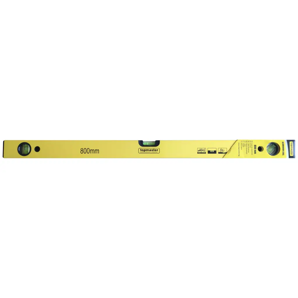 Το αλφάδι αλουμινίου Top Master, μήκους 80cm, είναι το ιδανικό εργαλείο για ακριβείς μετρήσεις σε οικοδομικές και κατασκευαστικές εργασίες. Διαθέτει τρία φιαλίδια για οριζόντια, κάθετη και διαγώνια μέτρηση, εξασφαλίζοντας απόλυτη ακρίβεια με απόκλιση μόλις 1mm/m. Κατασκευασμένο από ελαφρύ αλουμίνιο, είναι εύκολο στη μεταφορά και στην αποθήκευση, ενώ το ανθεκτικό του προφίλ διασφαλίζει μακροχρόνια χρήση.