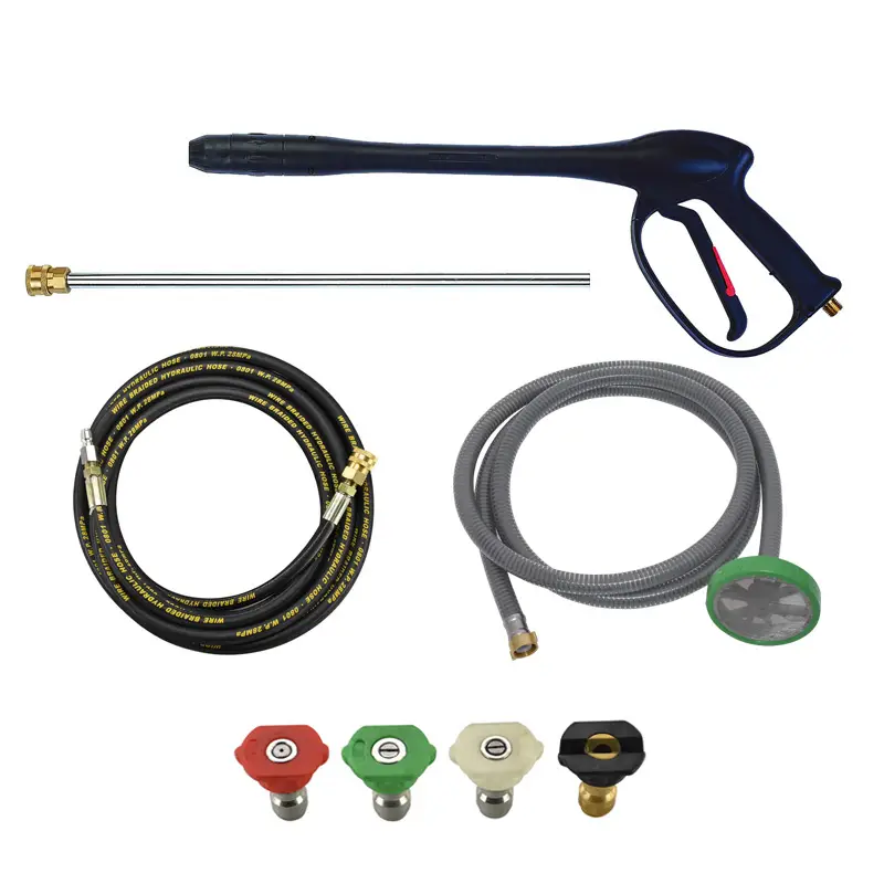 - Με πλήρη εξοπλισμό: επαγγελματικό πιστόλι με σκανδάλη ασφαλείας,σωλήνα υψηλής πίεσης 8 μέτρων – BRAIDED, σωλήνα αναρρόφησης απορρυπαντικού 1 μέτρο , ακροφύσια (0�, 25�, 40� και μπεκ απορρυπαντικού), ακροφύσιο σύνδεσης νερού, σωλήνας 3 μέτρα αναρρόφησης από δεξαμενή με φίλτρο