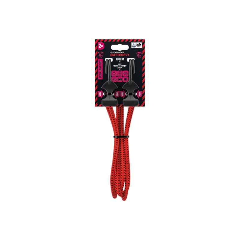 Quickloader QLBB100ULDF Bungee λάστιχο σε σχήμα χταπόδι πρόσδεσης φορτίων. Το τμήμα γάντζου που μοιάζει με πεταλούδα διευκολύνει το κράτημα χωρίς να γλιστράει ο γάντζος κατά την στερέωση. Προτείνεται η χρήση του σε μικρότερα αντικείμενα. Μήκος λάστιχου 100cm x 8mm. Συσκευασία 2 τεμαχίων.
