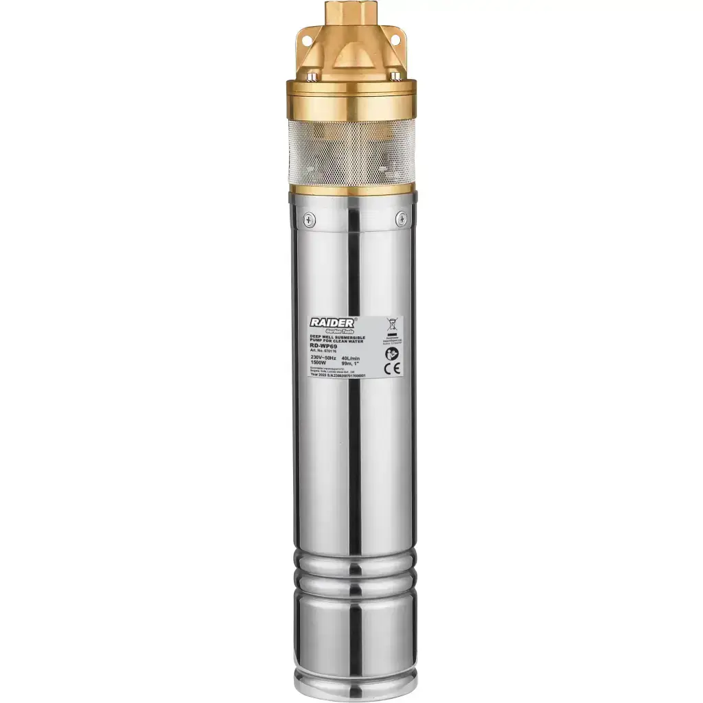 Η αντλία γεωτρήσεων ομβρίων της Raider RD-WP69 1500W 1" 40L/min 99m 070176 διαθέτει ισχύ 1500W και τάση 230V. Αποτελεί ιδανική επιλογή για αξιοπιστία και αποτελεσματικότητα στις εργασίες σας. Έχει στόμιο 1" (ίντσα) και μανομετρικό 99m. Ο μέγιστος ρυθμός παροχής είναι 40L/min (2400l/h), εξασφαλίζοντας σταθερή ροή νερού.