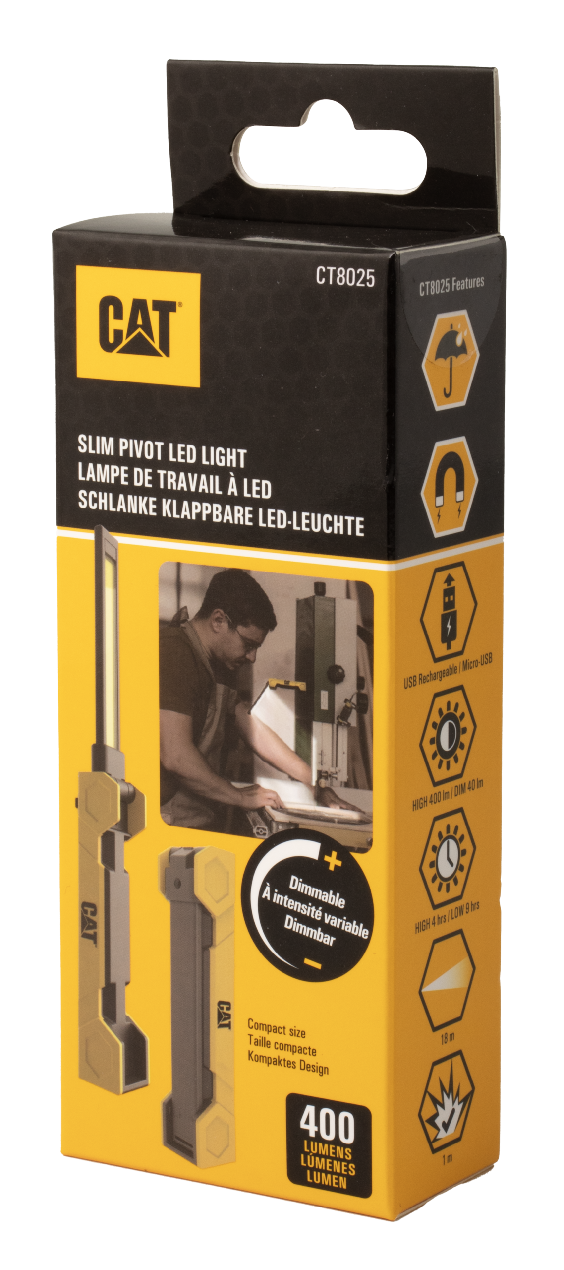 Ο επαναφορτιζόμενος φακός LED CAT CT8025 προσφέρει μέγιστη φωτεινότητα 400 lumens. Με ρυθμιζόμενο φωτισμό, μπορείτε να επιλέξετε την επιθυμητή φωτεινότητα, με χρόνο λειτουργίας έως 4 ώρες στην υψηλή λειτουργία και έως 9 ώρες στη χαμηλή λειτουργία. Η μέγιστη απόσταση δέσμης φωτός είναι έως και 18 μέτρα, με βαθμό πρόσκρουσης 1,0 m, καθιστώντας τον ιδανικό για πολλές χρήσεις. Επιπλέον, διαθέτει μαγνητική βάση, ενδεικτική λυχνία φόρτισης/μπαταρίας και είναι ανθεκτικός στο νερό IPX4. Ο φακός αναδιπλώνεται και προστατεύεται, ενώ περιλαμβάνεται καλώδιο φόρτισης USB-C.
